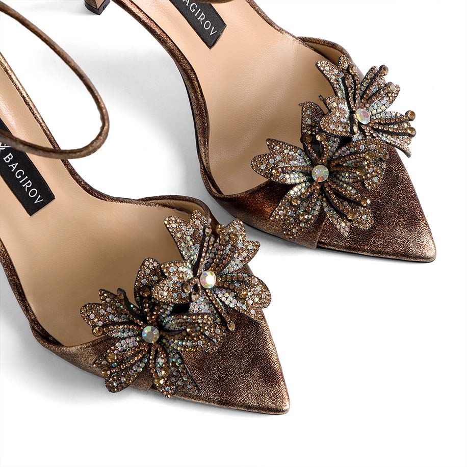 Gül bəzəkli ön hissə dizaynına malik olan bu model 10 sm incə daban quruluşu ilə zövqləri fəth edir. Model şıqlıq və zərifliyi ustalıqla birləşdirir, hər addımda özünüzü xüsusi və seçilən hiss etməyinizə imkan yaradır. Dəbli tədbirlər üçün ideal və tamamlayıcı bir seçimdir.