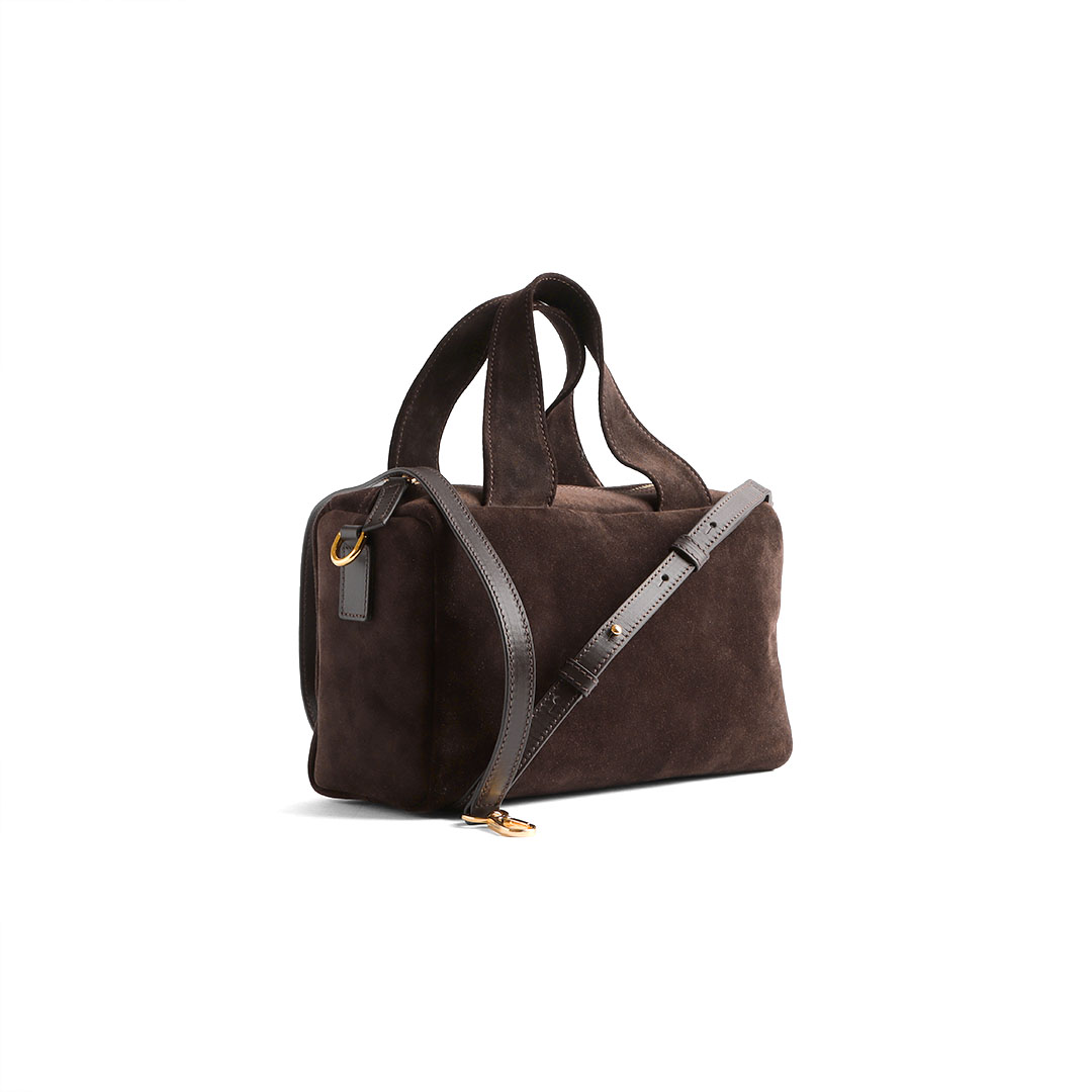 • Qəhvəyi nubuk dəri çanta