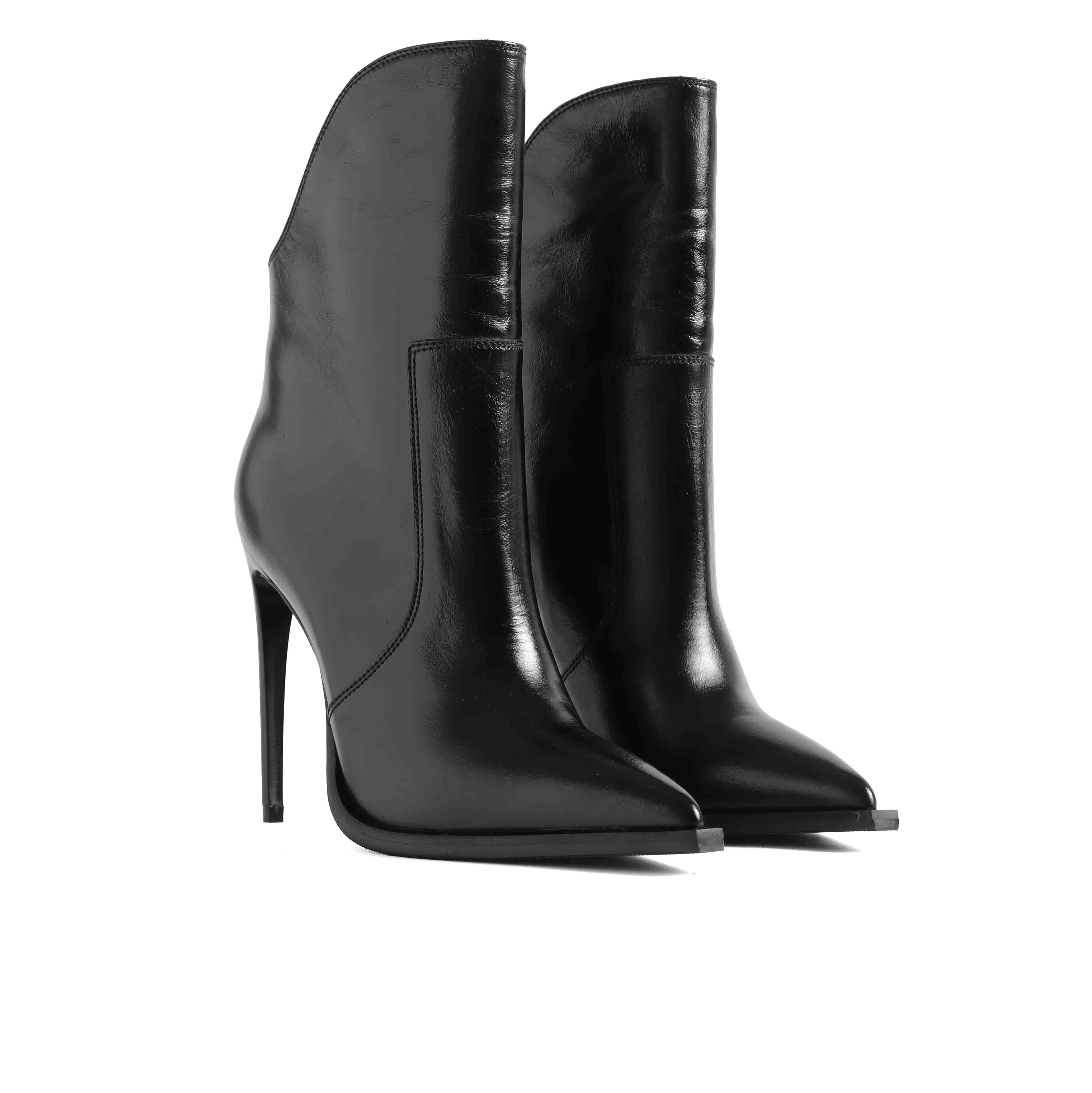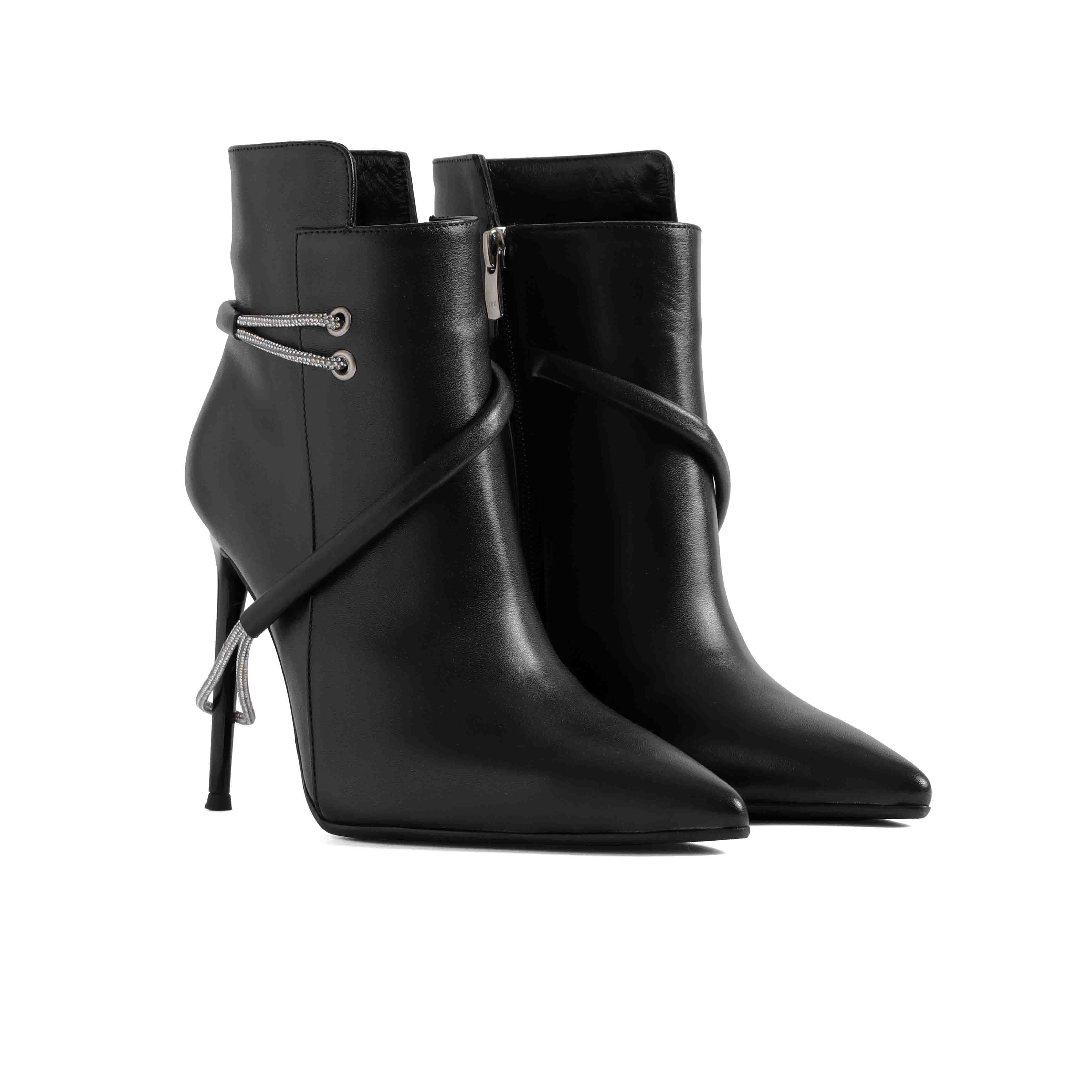 Zərifliyin ən qətiyyətli ifadəsi: bu qara təbii dəri model hər bir addımınıza qüsursuz incəlik qatacaq. 10 sm hündürlüyündəki incə daban siluetinizi dramatik şəkildə uzadaraq, sizə inanılmaz inam və cazibə bəxş edir. Təbii dəri materialın keyfiyyəti isə bu zamansız qara dizaynı uzun illər boyu qarderobunuzun əsas dəbdəbəli elementi edəcək
