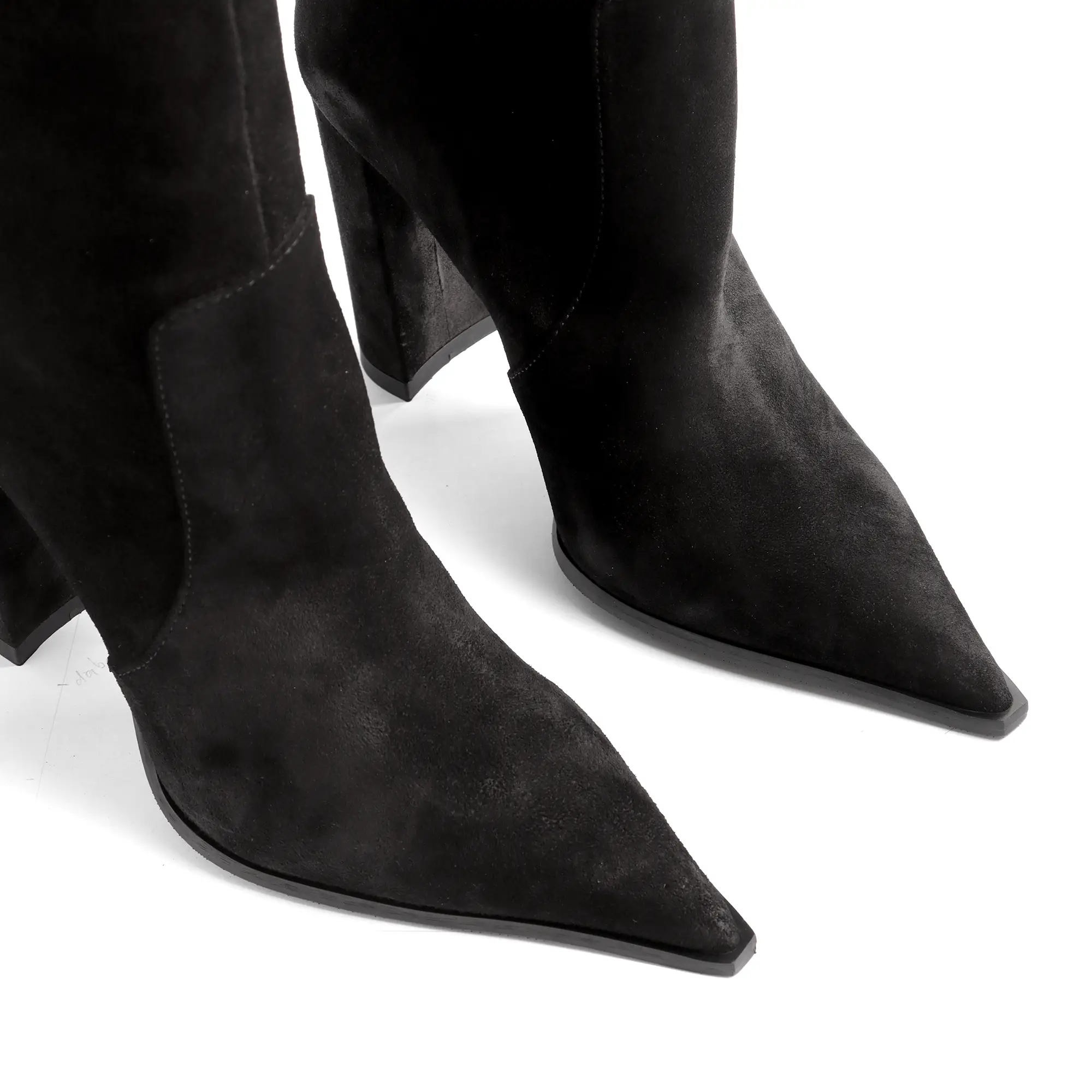 Zəriflik və praktikliyin birləşməsi: bu zamşa uzunboğaz çəkmə ilə qış stilinizə möhtəşəm bir toxunuş qatın. Lüks zamşa material ayağı tam qucaqlayaraq incə bir siluet yaradır və dəbdəbəli bir hiss bəxş edir. 10 sm hündürlüyündəki qalın daban ayaqqabının heyranedici görünüşünü qoruyur, eyni zamanda gün boyu maksimum dayanıqlılıq və rahatlıq təmin edir.