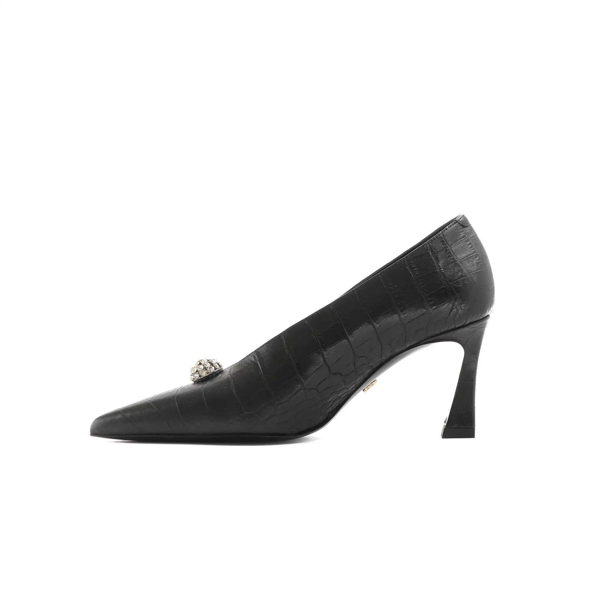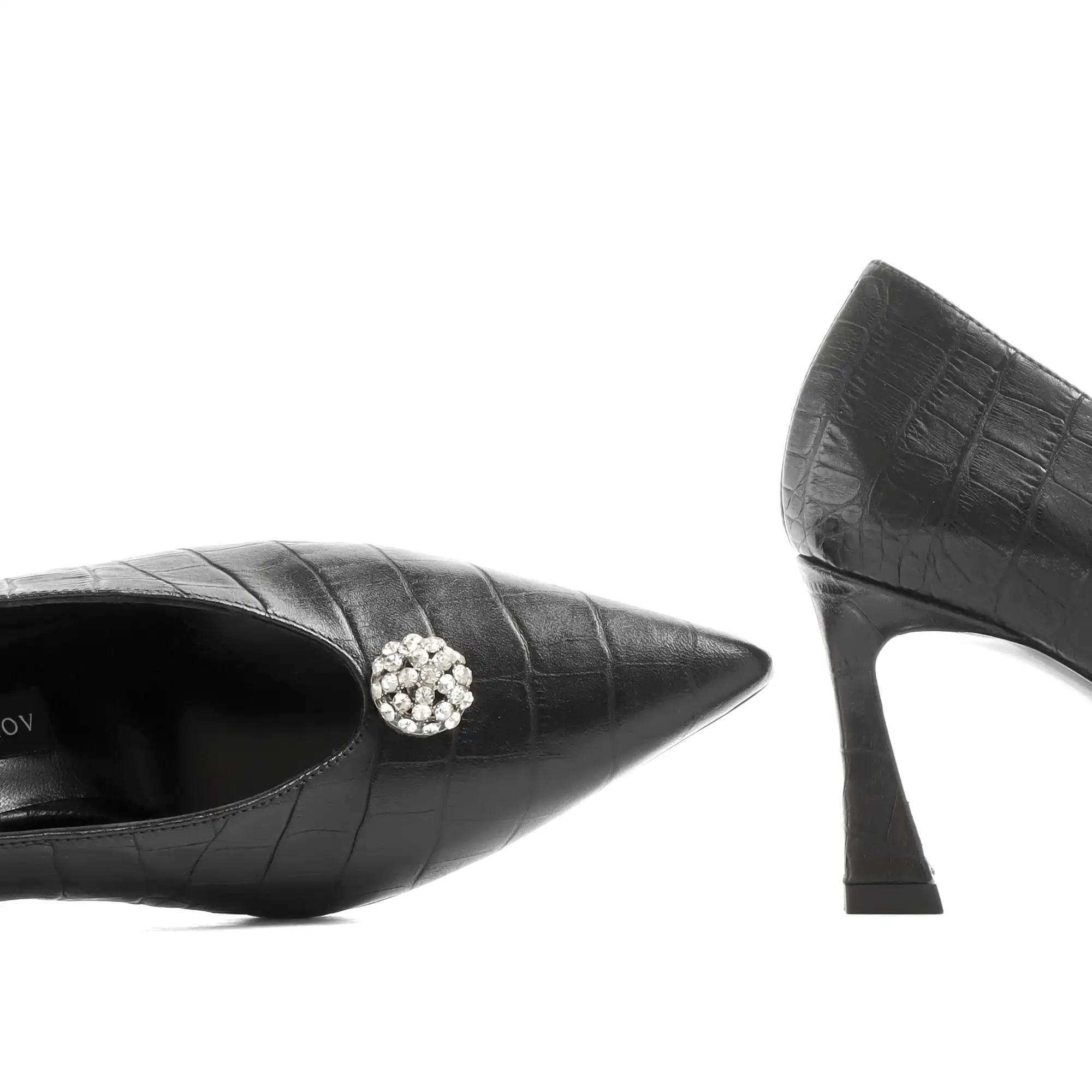 • Qara Kroko basqılı Dəri Stiletto