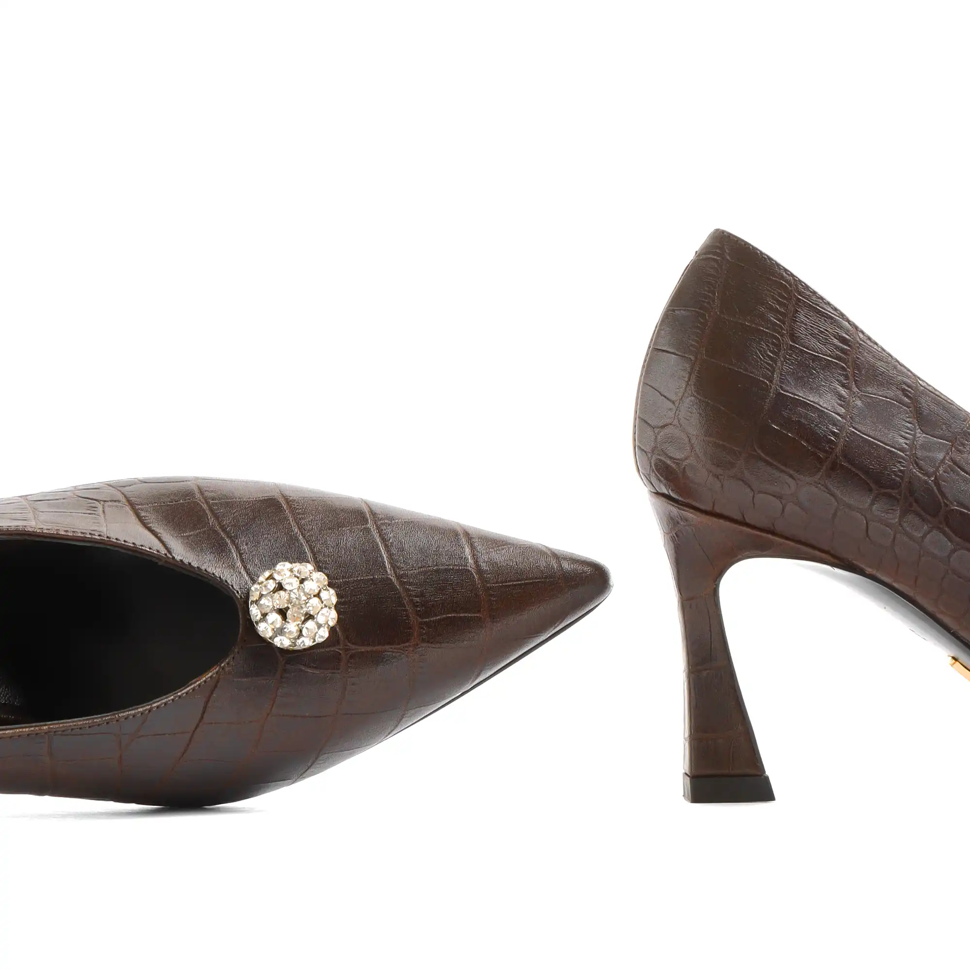 • Tünd Qəhvəyi Kroko basqılı Dəri Stiletto
